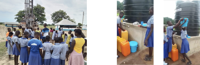 Earlier this year the old pump well at Faith Gate ceased to function. Gratefully, you all were generous with water giving last year! It’s time consuming to line up contractors, design the solution, run electricity, and transfer funds, but a school of 300 students (many who are residential) cannot function without drinking water in Ghana heat. No one thought of cancelling classes though! Every day the older students would ride their bikes to a pond and then pedal heavy cans of water back to the school for the younger students.