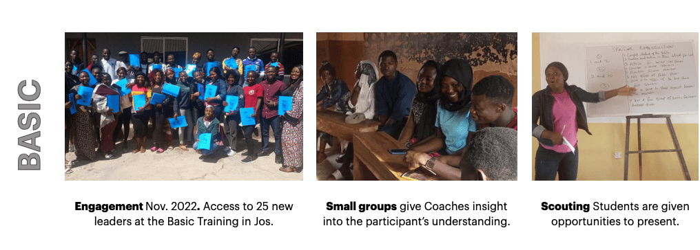 For his first few years, Peter focused on his home town of Jos, laying down roots, and forming a team to expand into other parts of Nigeria. He hosted Basic Trainings to meet new leaders and brought them back together for Follow Ups. Below is what the process looked like over the year with one group in Jos. The result was God providing twelve interested candidates to go deeper at a Leadership Development Summit.